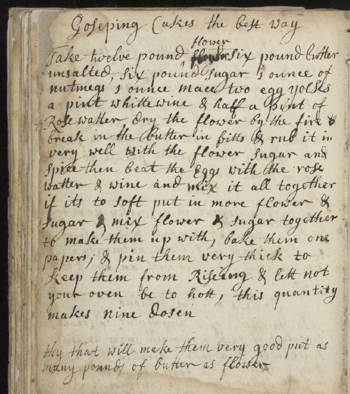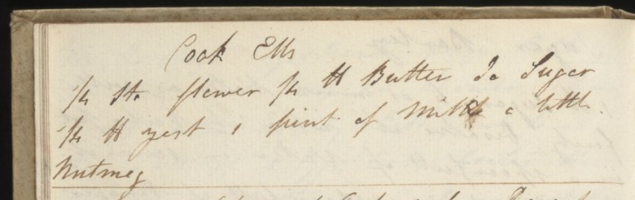 Something that became more and more apparent, is the somewhat lackadaisical approach to the spelling of these baked items. This is also true of the names of the two manuscript recipes, to whit Cookeals and Cock Ells: