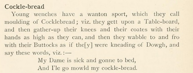And before I knew it, I was learning that as an extension of this ribaldry, sometimes dough was actually kneaded this way, and then baked and fed to the person whom the girl wished to enamour.