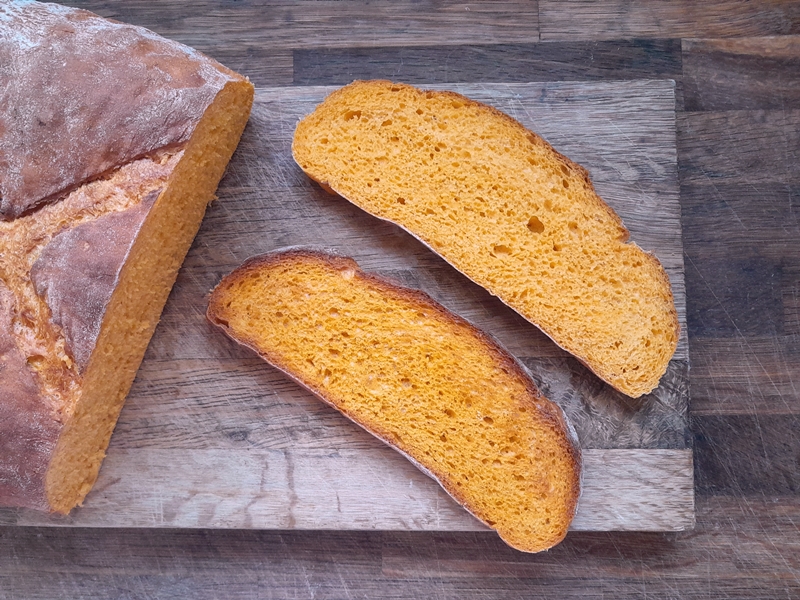 The recipe I have here is the solution, and is so simple, I’m surprised it hasn’t occurred to me before: instead of breadcrumbs in the stuffing, put the stuffing flavourings into the bread. The bread can then be toasted for a sandwich and provide crunch and taste without the resulting sandwich requiring the unhinging of one’s jaw.