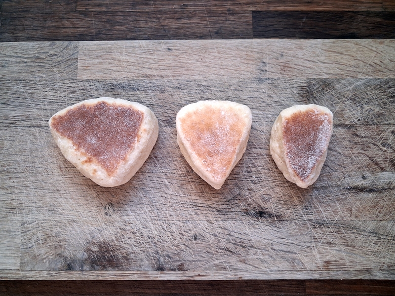 • For cream farls, bake gently in your pan for around 10 minutes each side, turning carefully when the first side is toasted and lightly browned.